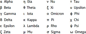 The alpha (a) star is the main star of the named constellation, though it is not always the brightest and not all constellations have alpha stars with names (or even alpha stars at all). In 1603 the German astronomer Johann Bayer worked through each constellation, usually assigning alpha (a) to the brightest star, beta (β) to the next brightest, then gamma (γ), delta (δ) and so on. As a result, stars are often labelled on charts with a letter of the Greek alphabet, known as the Bayer Letter. The full Greek alphabet is given on the right.