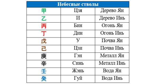 Пять Янских стволов происходят из природы и принадлежат к преднебесному (внутреннему, врождённому), а пять Иньских стволов – связаны с человеческой деятельностью и относятся к посленебесному (внешнему, приобретённому). Огонь Ян рождается в Тигре – это вполне ясно.
