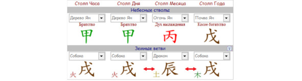 Если встречается Петух, то происходит столкновение – дерево обязательно теряет листву. Если встречаются Свинья и Коза, то происходит слияние – дерево обязательно разрастётся в лес. Если день и час представлены многочисленным металлом, и столпы удачи движутся на запад, то беды не избежать.