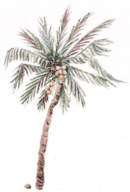 Выбрав подходящие пальмы, он быстро выкопал две ямки в рыхлой земле. Затем примерился к тому дереву, что повыше, уцепился руками, подпрыгнул и упёрся ногами в выступы на стволе. Он поднимался вверх медленно, ведь лазать по кокосовым пальмам – занятие не из лёгких. В конце концов он добрался до самой верхушки.
