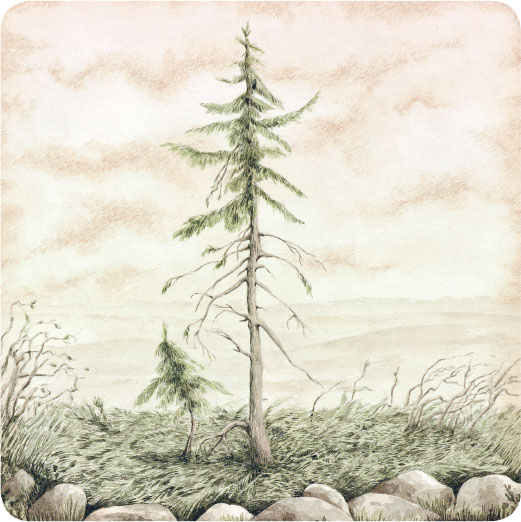 Сразу за лесом начинались поля. На них росло всего понемногу, но ближе всего к лесу крестьянин посеял лён. Вскоре взошли первые ростки, и ель восхищённо смотрела на нежную зелёную поросль.