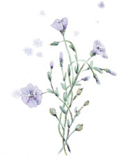 Лён рос и рос, и к концу весны его зелёные головки увенчались маленькими голубыми шлемами.