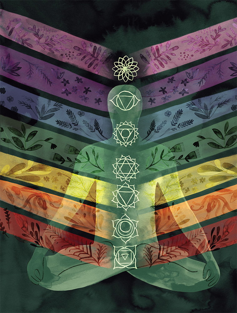 Мы все понимаем и признаем тот факт, что во Вселенной существует множество различных энергий: темная, кинетическая, солнечная, магнитная, гравитационная и т. д. Чакра представляет собой энергетический центр, располагающийся в теле человека. Обычно она изображается в виде колеса или водоворота, находящегося в определенных местах вдоль позвоночника. Само слово «чакра» на санскрите означает «колесо». В этих областях наши нервы связываются, а также здесь выделяются гормоны. Все чакры соединены между собой праной, которую можно описать как жизненную силу или интерпретировать как периферическую нервную систему. На самом деле это одно и то же. Разница заключается лишь в том, как вы об этом думаете и верите ли вы в то, что у нас есть возможность сознательно влиять на эти точки. Цигун, тай-чи, акупрессура, акупунктура, рэйки – все они работают с праной, несмотря на то, что называют это по-разному (энергетические меридианы, нади, ци и т. д.).