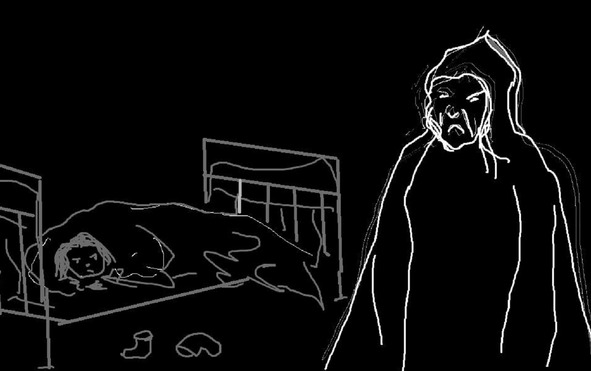 Девочка от страха с головой накрылась одеялом. Поющая женщина открыла дверь и подошла к её кровати. Затаив дыхание, девочка старалась как можно сильней ущипнуть свою соседку, чтобы позвать её на помощь, но та спала непробудным сном. Постояв немного, женщина ушла, а девочка уснула и не просыпалась до самого утра. На следующий день девочку будто подменили: она стала послушной, никому не грубила, спать легла вовремя. Вот, не зря же взрослые говорят: не шумите перед сном, а то кто-нибудь придёт.