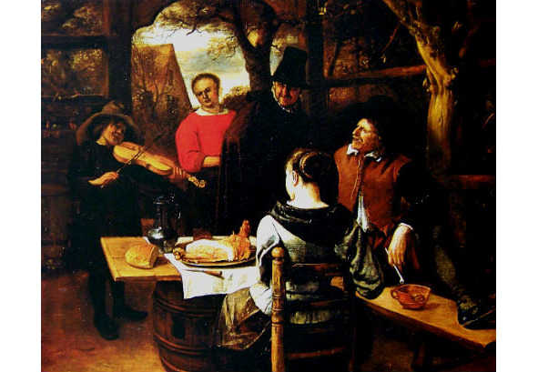 Ян Стен – голландский художник, как известно, привечаемый Петром I. Можно догадаться, за что. Стен прославился сценками из народной жизни весьма натуралистического свойства. Юмор у него, как правило, незамысловатый, но острый. Данная картина несколько выпадает из привычного ряда его наблюдений за человеческими характерами и представляется чрезвычайно интересной.