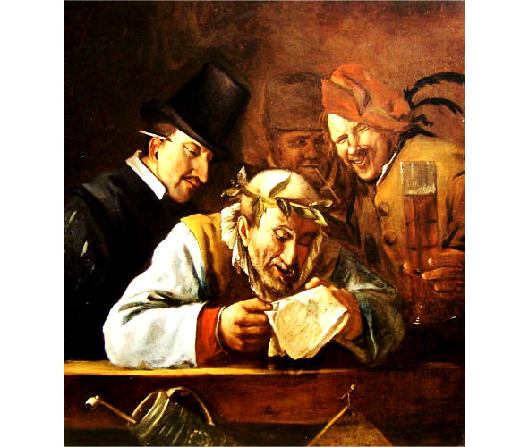 В Голландии середины XVII века существовало множество литературных обществ, члены которых состязались, в том числе, и в ораторском искусстве. Этакие грёзы по античности. Выглядело это достаточно комично, если известный пересмешник Ян Стен не прошёл мимо. Что же у него получилось?