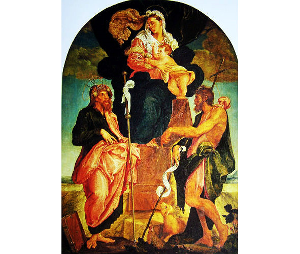 Большой алтарный образ кисти Якопо Бассано (художника, прозванного так по названию города, в котором работал – Бассано). Изображены: Богоматерь с Младенцем, Святой Иаков Старший (старший брат Иоанна-евангелиста, входивший в число двенадцати апостолов) и Святой Иоанн Креститель.
