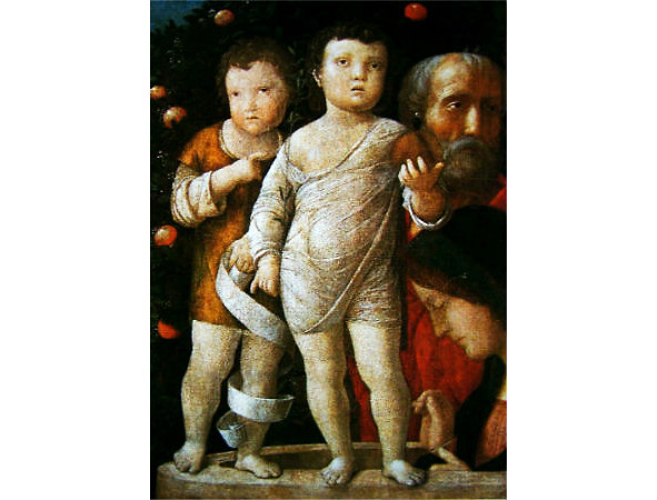 Андреа Мантенья (1431—1506). «Святое Семейство с маленьким Иоанном Крестителем». Около 1500. Лондонская национальная галерея.