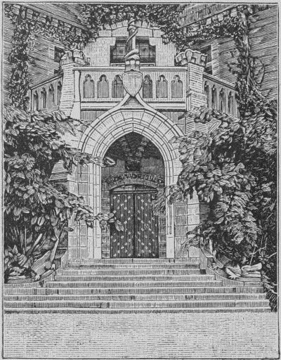 The château stands in an admirable situation, and presents a very fine external aspect. We give a general view of it and a picture of the main entrance. The interior decoration is very beautiful.