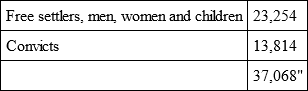 "England has long been in the habit of disposing of its wicked citizens in a way at once philosophic and politic, by sending them out to cultivate distant colonies. It was thus that the shores of the Delaware and the Potomac were peopled in America. After the American war, they were at a loss where to send the convicts, and the Cape of Good Hope was first thought of; but, on the recommendation of the learned Sir Joseph Banks, New South Wales obtained the preference. The first vessel arrived at Botany Bay on the 20th January 1788, and brought out 760 convicts, and according to a census taken in 1821, exhibited the following results in thirty-three years, viz. —