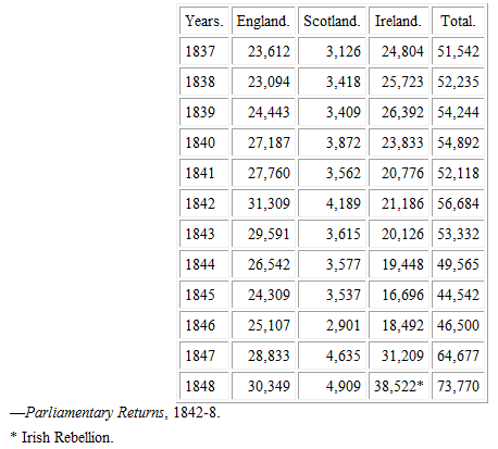 Viz.: – 1847, 258,000; 1848, 248,000; 1849, understood to be still larger. —Parliamentary Reports.