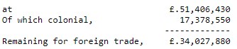 It follows, then, that whilst foreign trade simply consumes something more than double that of colonial trade, the home trade alone amounts to eleven times over both foreign and colonial together, and by sixteen times as much the amount of foreign trade alone. Upon the hypothesis of Mr Cobden, therefore, foreign trade should be treated as of no value at all in the national sense.