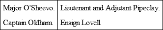 O'Sheevo. – Devilish bad quarters they'd be sometimes, in them same campaigns, eh, Oldham? Short commons, eh?