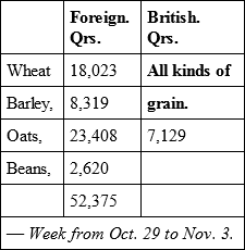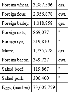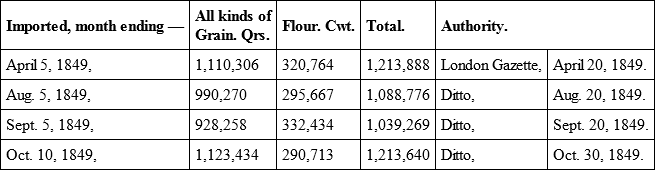 Take as an example the importation into London, from 24th to 29th September 1849: prices being – wheat, 41s. 9d.; barley. 27s.; oats, 17s. 10d.