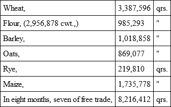 Abstract of grain imported in quarters in seven months of free trade —