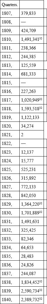 Quarters of wheat and wheat-flour imported into Britain from 1807 to 1836, both inclusive: —