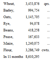 "The official returns of the importations of grain, &c., into the United Kingdom have not yet been completed; but for the eleven months ending 5th of December 1850, the quantities were —