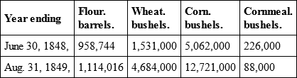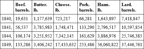 The repeal of the Corn Laws, and of the duties levied on provisions, have enormously, as we all know, increased the exports of America. The following tables will show their amount, and, in the case of provisions, the increase since the lowered tariffs came into operation.