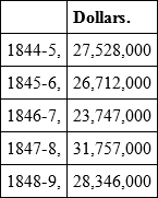 Now, if the doctrine of the Free-traders is a true one, it will follow that the imports of America must be on a scale corresponding to the magnitude of the exports. If that be so, the fact will be evident on the face of their revenue accounts. We turn to these, and find the following results: —