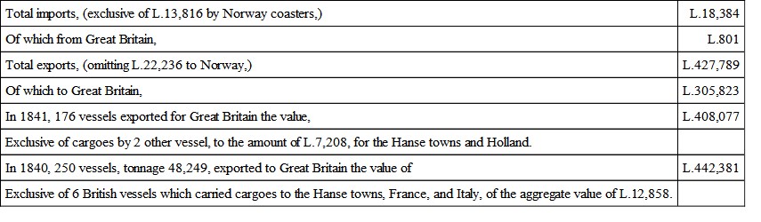 In order to exemplify the nature of the trade betwixt Great Britain and Russia, and exhibit it in its most disadvantageous aspect, we shall add here, from statements verified as authentic by competent authorities on the spot, the returns of British trade and shipping with certain Russian ports for 1842, which we have recently received direct. They will assist us to a conception of the relative importance of each place in respect of its commercial connexion with this country.