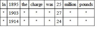 Here you will see that the reduction from 32 to 24 was 25 per cent. or a much greater reduction than the reduction of the total capital debt, and this, of course, was contributed to by the lower rates of interest which had been brought about from time to time. When we take the annual charge per head the fall is much more striking. In the hundred years it decreased from 37s. to 10s. This, however, was a money reduction, and the real burden per head can only be judged after we have considered what the purchasing power of that money was. Now, the charge per head, reduced to a common basis of purchasing power, fell as follows:—