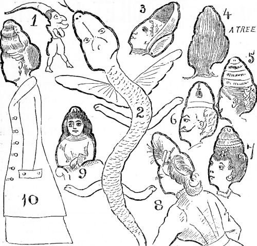 These are filled-in wiggles that several of our young correspondents have drawn from the outlines given in Nos. 3 and 4 of Young People. They are the contributions of H. W. K., Jessie Beal, J. A. Wells, H. W. P., J. M. W., Lil, A. D. Crane, S. R. W., Fred Houston, and H. E. M. Wiggles similar in design were also received from Cyrus O., Virgie Cumings, W. G. Page, J. H. Grensel, Sadie Vairin, and others. Next week we shall show you what we make from wiggle No. 4, and at the same time give a new one.