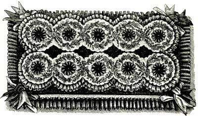 The holiday season is approaching, and little girls, who have generally more time than money, are employing their leisure moments in making pretty gifts for their papas and mammas, and brothers and sisters, which will give double pleasure as being the work of their own hands. Here is a pretty holiday gift, which our young friends can readily make with the help of the following description: Cut of Bordeaux velvet one piece eleven inches and three-quarters long and six inches wide for the outside, and cut three pieces of white satin of the same size for the lining. Apply embroidery worked on white cloth to the velvet. Having transferred the design to the material, which is pinked on the edges and inside of the figures, work the flowers in chain stitch with coral red silk in several shades, the stamens in knotted stitch and point Russe with yellow silk, and the spray in herring-bone stitch with olive silk in several shades. For the buds in knotted stitch use pink silk. Having bordered the application with olive-colored satin ribbon half an inch wide laid in box pleats, chain-stitch it on the foundation along the inner edges with gold thread. Underlay the velvet with wadding, and line it with satin; join the two pieces of satin designed for the bottom over wadding, and edge the bottom with a ruffle of Bordeaux satin ribbon seven-eighths of an inch wide. The case is joined with narrow white satin ribbon. Bows of olive and Bordeaux satin ribbon trim the case as shown by the illustration. A full-sized design of the embroidery was given on page 120 of Harper's Bazar, No. 8, Vol. XII. It is a good plan to perfume the wadding with sandal-wood, violet, or some of the many fragrant powders sold by druggists for this purpose. This pretty glove case can be varied by making it of plain silk or velvet, and trimming it in any style our young readers may fancy.