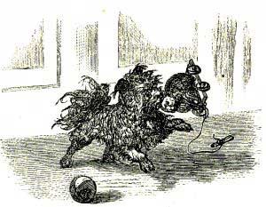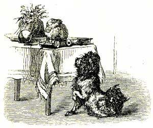 It was curious to see a dog perpetually rushing at cats, and then returning from the chase to gambol about in the most friendly manner with another cat. The friendly intercourse with the one never had the slightest effect in changing its animosity to others. The dog's affection even went so far as to cause it to show resentment whenever the cat was punished. When the cat was touched with the whip, it would turn up its eyes, and look as much annoyed as it was possible for a dog to be. Animals have keener susceptibilities, and show more feeling, than many people imagine.