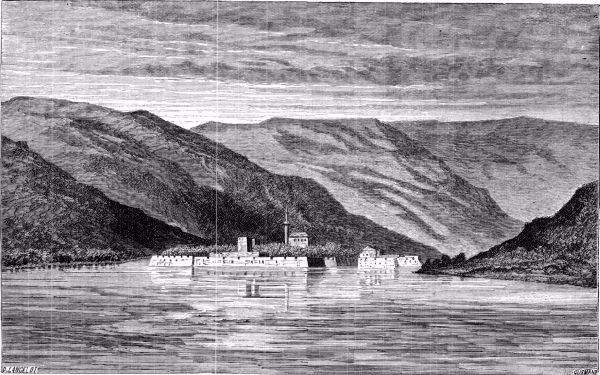 But I speedily forgot this next morning, when the landlord informed me that, instead of toiling over the road along the crags to Orsova, whither I was returning, I could embark on a tug-boat bound for that cheerful spot, and could thus inspect the grand scenery of the Iron Gates from the river. The swift express-boats which in time of peace run from Vienna to Rustchuk whisk the traveller so rapidly through these famous defiles that he sees little else than a panorama of high rocky walls. But the slow-moving and clumsy tug, with its train of barges attached, offers better facilities to the lover of natural beauty. We had dropped down only a short distance below Drenkova before we found the river-path filled with eddies, miniature whirlpools, denoting the vicinity of the gorges into which the great current is compressed. These whirlpools all have names: one is called the "Buffalo;" a second, Kerdaps; a third is known as the "Devourer." The Turks have a healthy awe of this passage, which in old times was a terrible trial to these stupid and always inefficient navigators. For three or four hours we ran in the shade of mighty walls of porphyry and granite, on whose tops were forests of oaks and elms. High up on cliffs around which the eagles circle, and low in glens where one sometimes sees a bear swimming, the sun threw a flood of mellow glory. I could fancy that the veins of red porphyry running along the face of the granite were blood-stains, the tragic memorials of ancient battles. For, wild and inaccessible as this region seems, it has been fought over and through in sternest fashion. Perched on a little promontory on the Servian side is the tiny town of Poretch, where the brave shepherds and swineherds fought the Turk, against whose oppression they had risen, until they were overwhelmed by numbers, and their leader, Hadji Nikolos, lost his head. The Austrians point out with pride the cave on the tremendous flank of Mount Choukourou where, two centuries ago, an Austrian general at the head of seven hundred men, all that was left to him of a goodly army, sustained a three months' siege against large Turkish forces. This cave is perched high above the road at a point where it absolutely commands it, and the government of to-day, realizing its importance, has had it fortified and furnished with walls pierced by loopholes. Trajan fought his way through these defiles in the very infancy of the Christian era; and in memory of his first splendid campaign against the Dacians he carved in the solid rock the letters, some of which are still visible, and which, by their very grandiloquence, offer a mournful commentary on the fleeting nature of human greatness. Little did he think when his eyes rested lovingly on this inscription, beginning—