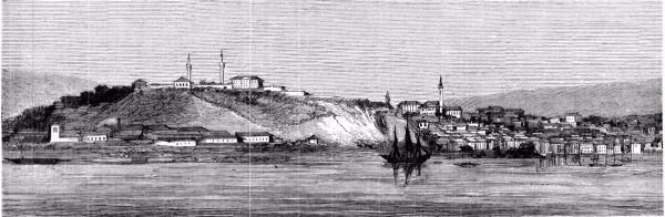 He who clings to the steamers plying up and down the Danube sees much romantic scenery and many curious types, but he loses all the real charm of travel in these regions. The future tourist on his way to or from Bulgaria and the battle-fields of the "new crusade" will be wise if he journeys leisurely by farm-wagon—he will not be likely to find a carriage—along the Hungarian bank of the stream. I made the journey in April, when in that gentle southward climate the wayside was already radiant with flowers and the mellow sunshine was unbroken by cloud or rain. There were discomfort and dust, but there was a rare pleasure in the arrival at a quaint inn whose exterior front, boldly asserting itself in the bolder row of house-fronts in a long village street, was uninviting enough, but the interior of which was charming. In such a hostelry I always found the wharfmaster, in green coat and cap, asleep in an arm-chair, with the burgomaster and one or two idle landed proprietors sitting near him at a card-table, enveloped in such a cloud of smoke that one could scarcely see the long-necked flasks of white wine which they were rapidly emptying. The host was a massive man with bulbous nose and sleepy eyes: he responded to all questions with a stare and the statement that he did not know, and seemed anxious to leave everything in doubt until the latest moment possible. His daughter, who was brighter and less dubious in her responses than her father, was a slight girl with lustrous black eyes, wistful lips, a perfect form, and black hair covered with a linen cloth that the dust might not come near its glossy threads. When she made her appearance, flashing out of a huge dark room which was stone paved and arched overhead, and in which peasants sat drinking sour beer, she seemed like a ray of sunshine in the middle of night. But there was more dignity about her than is to be found in most sunbeams: she was modest and civil in answer, but understood no compliments. There was something of the princess-reduced-in-circumstances in her demeanor. A royal supper could she serve, and the linen which she spread on the small wooden table in the back courtyard smelled of lavender. I took my dinners, after the long days' rides, in inns which commanded delicious views of the Danube—points where willows overhung the rushing stream, or where crags towered above it, or where it flowed in smooth yet resistless might through plains in which hundreds of peasants were toiling, their red-and-white costumes contrasting sharply with the brilliant blue of the sky and the tender green of the foliage.