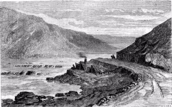 Drenkova is a long street of low cottages, with here and there a two-story mansion to denote that the proprietors of the land reside there. As I approached the entrance to this street I saw a most remarkable train coming to meet me. One glance told me that it was a large company of gypsies who had come up from Roumania, and were going northward in search of work or plunder. My driver drew rein, and we allowed the swart Bohemians to pass on—a courtesy which was gracefully acknowledged with a singularly sweet smile from the driver of the first cart. There were about two hundred men and women in this wagon-train, and I verily believe that there were twice as many children. Each cart, drawn by a small Roumanian pony, contained two or three families huddled together, and seemingly lost in contemplation of the beautiful sunset, for your real gypsy is a keen admirer of Nature and her charms. Some of the women were intensely hideous: age had made them as unattractive as in youth they had been pretty; others were graceful and well-formed. Many wore but a single garment. The men were wilder than any that I had ever before seen: their matted hair, their thick lips and their dark eyes gave them almost the appearance of negroes. One or two of them had been foraging, and bore sheeps' heads and hares which they had purchased or "taken" in the village. They halted as soon as they had passed me, and prepared to go into camp; so I waited a little to observe them. During the process of arranging the carts for the night one of the women became enraged at the father of her brood because he would not aid her in the preparation of the simple tent under which the family was to repose. The woman ran to him, clenching her fist and screaming forth invective which, I am convinced, had I understood it and had it been directed at me, I should have found extremely disagreeable. After thus lashing the culprit with language for some time, she broke forth into screams and danced frantically around him. He arose, visibly disturbed, and I fancied that his savage nature would come uppermost, and that he might be impelled to give her a brutal beating. But he, on the contrary, advanced leisurely toward her and spat upon the ground with an expression of extreme contempt. She seemed to feel this much more than she would have felt a blow, and her fury redoubled. She likewise spat; he again repeated the contemptuous act; and after both had gratified the anger which was consuming them, they walked off in different directions. The battle was over, and I was not sorry to notice a few minutes later that paterfamilias had thought better of his conduct, and was himself spreading the tent and setting forth his wandering Lares and Penates.