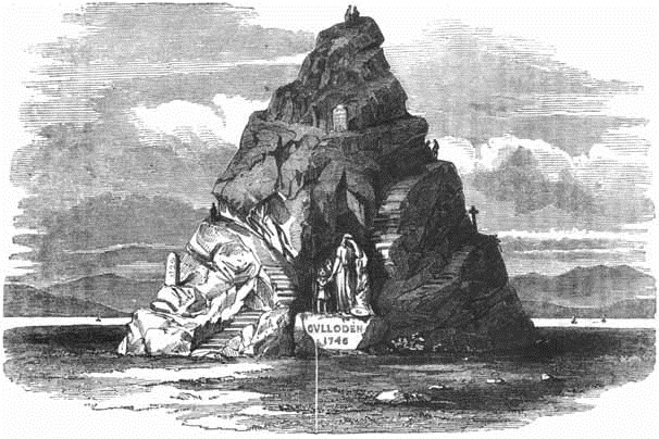 Culloden Moor—the battle-field—lies eastward about a mile from Culloden House. After an hour's climbing up the heathy brae, through a scattered plantation of young trees, clambering over stone dykes, and jumping over moorland rills and springs, oozing from the black turf and streaking its sombre surface with stripes of green, we found ourselves on the table-land of the moor—a broad, bare level, garnished with a few black huts, and patches of scanty oats, won by patient industry from the waste. We should premise, however, that there are some fine glimpses of rude mountain scenery in the course of the ascent. The immediate vicinage of Culloden House is well wooded; the Frith spreads finely in front; the Ross-shire hills assume a more varied and commanding aspect; and Ben Wyvis towers proudly over his compeers, with a bold pronounced character. Ships were passing and re-passing before us in the Frith, the birds were singing blithely overhead, and the sky was without a cloud. Under the cheering influence of the sun, stretched on the warm, blooming, and fragrant heather, we gazed with no common interest and pleasure on this scene.