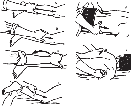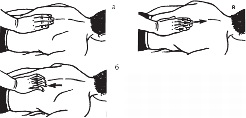 Рис. 24. Прямолинейное растирание: а – в – последовательность выполнения приема