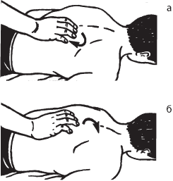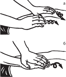 Рис. 25. Круговое растирание подушечками пальцев: а – начальная фаза; б – конечная фаза