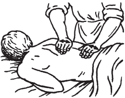 1. Применяют прерывистую вибрацию (рубление, поколачивание, похлопывание) на напряженных группах мышц, что вызывает болезненные ощущения у массируемого).