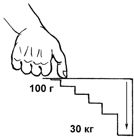 Прием пальцевого точечного массажа разминание чаще состоит из двух или трех фаз: фиксации, надавливания и сдавливания. При выполнении нарастающего надавливания достигают расслабляющего действия, а при прерывистом, сжимающем, щипцеобразном воздействии данный прием оказывает стимулирующий эффект (рис. 10).