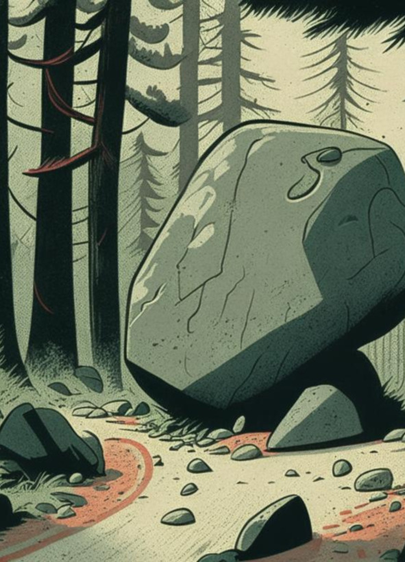 На дороге лежал большой камень. Он скатился с горы и перегородил путь.