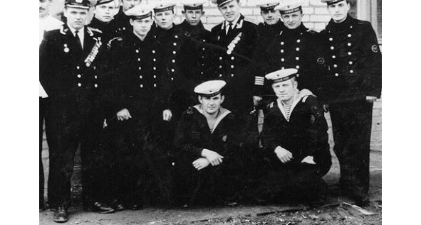 1972 год. Кап. 2 р. Копытин Н. Г. и п/п-к Климкин А. И. с первым набором личного состава СДВ радиостанции «Атлант»