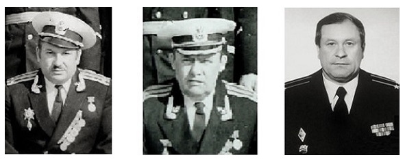 1985 год. Командование радиостанции «Атлант»: командир кап.2 р. Пухомелин В. М. (в центре), и.о. гл. инженера к-н Царёв Г. П. (слева) и зам. ком. по политчасти п/п-к Вязовкин А. А.