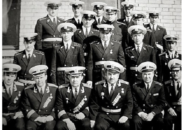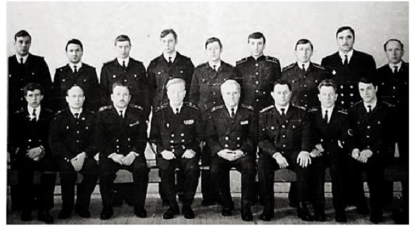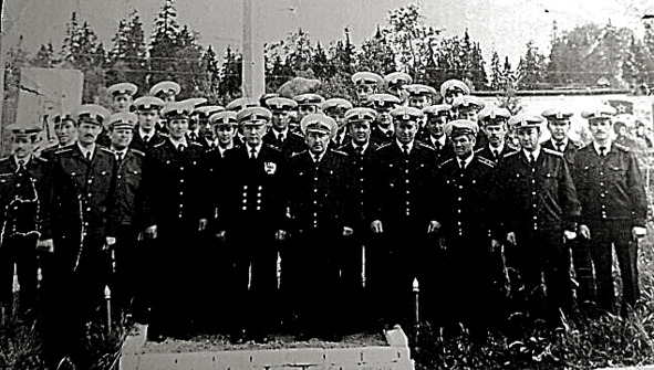 1977 год. Групповое фото офицеров и мичманов радиостанции