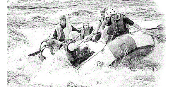 И вот впереди появилось что-то, что всех немного встревожило. Наш инструктор, он же рулевой, всех успокоил, сказав, что мы подходим к первому порогу. Порог небольшой, гребень высотой всего полметра и проходится он «влёт». Течение заметно возросло, более того, нас понесло к другому берегу, а нужно было держать лодку посередине реки. Беспрекословно подчиняясь своему рулевому, мы усиленно гребли, и надо сказать у нас это неплохо получалось. Первый порог прошли удачно, правда у всех дух захватило, когда лодка на самом гребне порога резко ускорилась. После первого «боевого» крещения все ощутили себя бывалыми моряками, появился адреналин в крови и ощущение того, что теперь нам сам чёрт не страшен. Да, знать бы тогда, какой он этот чёрт, может быть, и не хорохорились бы так. Но эйфория быстро прошла, и у всех невольно возник вопрос – а что же будет дальше, если это самый малый порог. Спросили у инструктора, он невозмутимо сказал, что всего порогов четыре, самый сложный третий, высотой два метра. Настроение у всех сразу упало, но отступать было уже поздно.