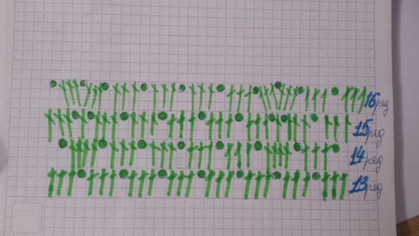В 13 ряду работу соединяем и уже последующие ряды с 13—16 вяжем в круговую.