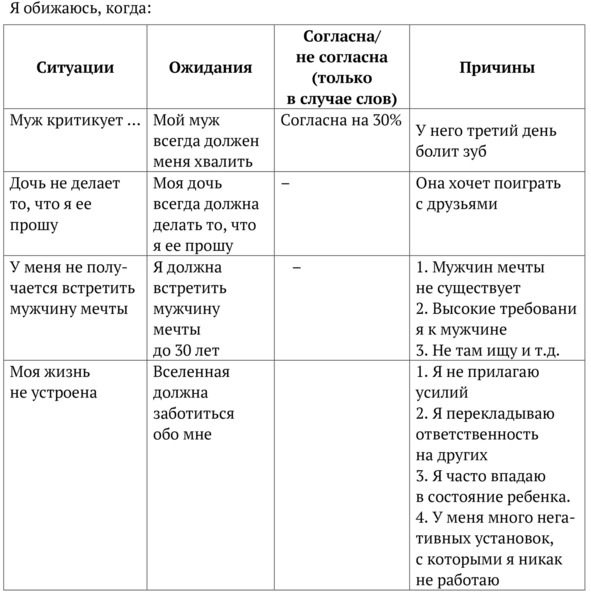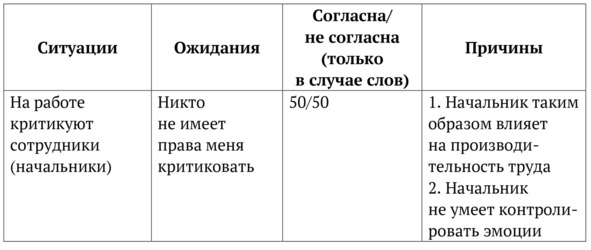 И рядом пишите свои ожидания – мой муж всегда должен меня хвалить. Или мой муж не имеет права меня критиковать.