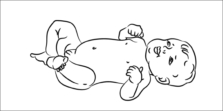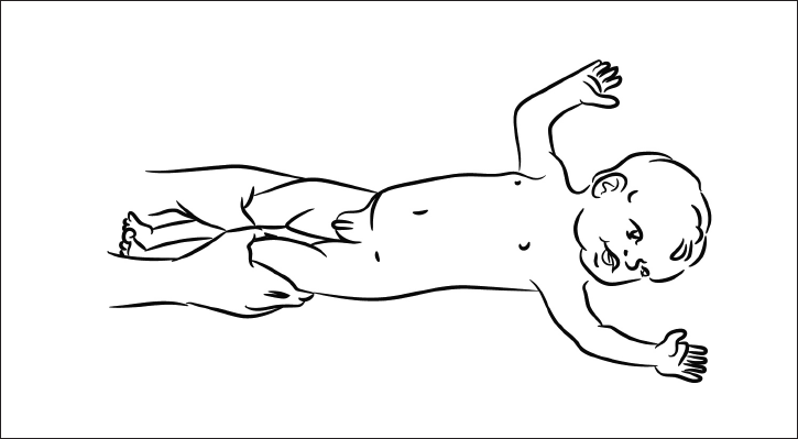 Когда ребенок долго лежит на спине, он пытается перевернуться. Его побуждает к этому рефлекс переворачивания (рис. 17).
