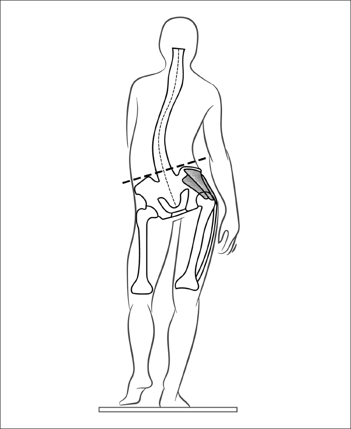 Рис. 41. Гипотония абдукторов бедра: малой, средней ягодичной мышцы.