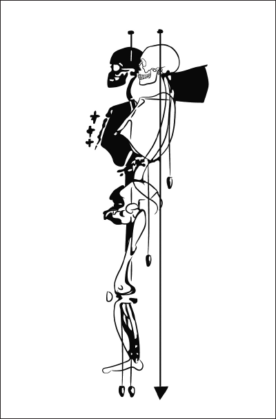 Рис. 20. Неоптимальность динамики. Нарушение осанки как результат снижения функции мышц таза.