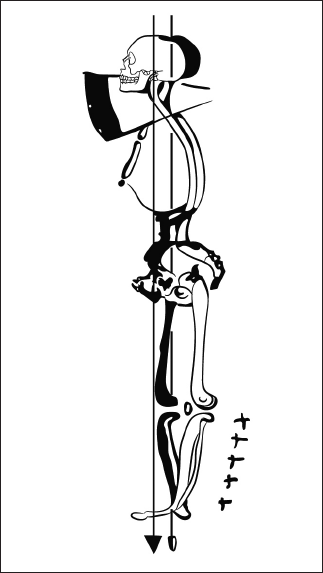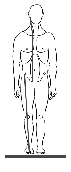 Рис. 21. Неоптимальная статика. Заднее смещение головы, наклон таза назад и избыточное сгибание в коленных суставах как результат нарушения формирования рефлекса разгибания.