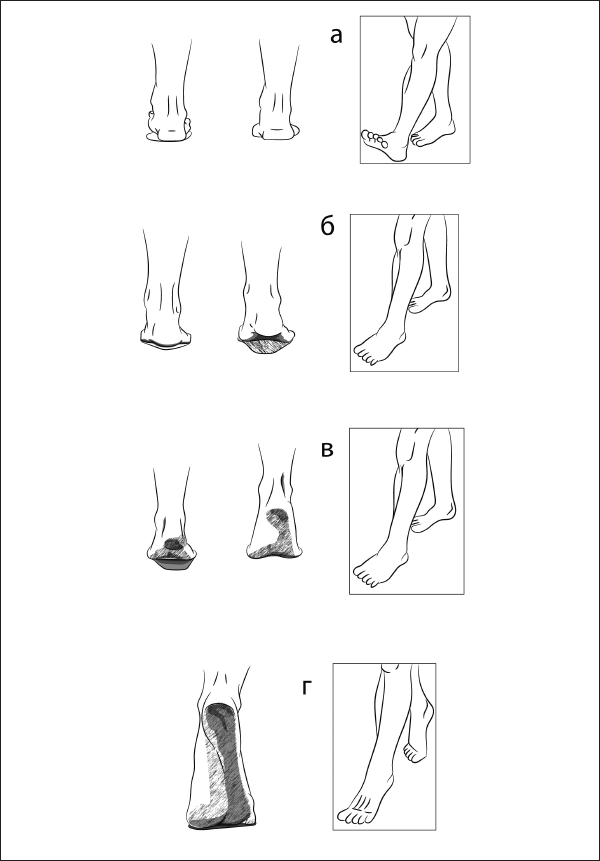 Ошибка. Смещение пятки в сторону. Смещение пятки внутрь свидетельствует о гипотонии наружных разгибателей, а наружу – о гипотонии внутренних разгибателей ноги (рис. 36, 37).