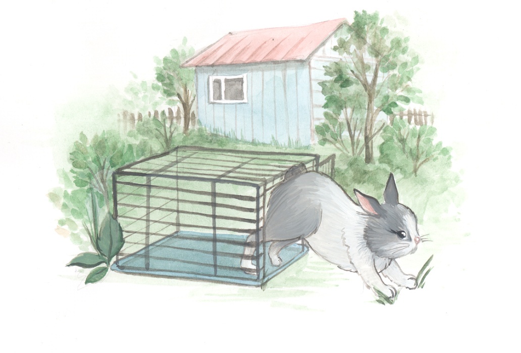 Оставив кролика нежиться на солнышке, гости пошли собирать ягоды. Их не было минут тридцать. Возвратившись к дому, семья замерла в неописуемом ужасе: собранное дедушкой ограждение упало, а кролик – исчез!