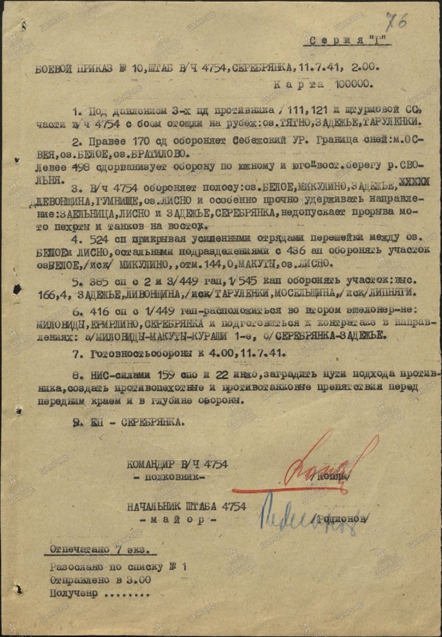 Приказ командира 112-ой стрелковой дивизии полковника Копяка